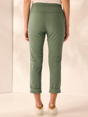 The LTL port 7/8 pant – features elasticated waist with adjustable drawcord, front pocket with antique nickel hardware & relaxed leg with optional turn up cuff. Perfect lightweight cotton rich stretch pant for everyday.
