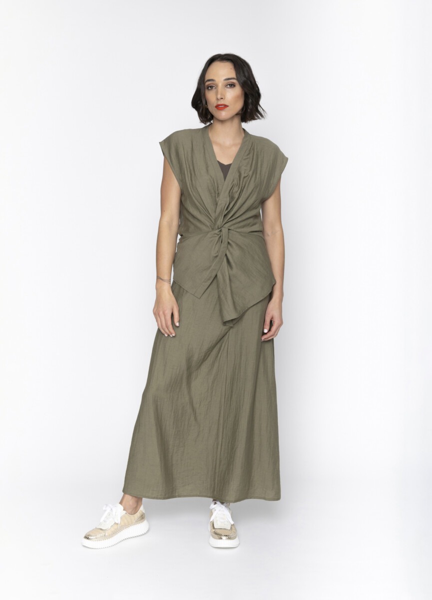 A stunning, earthy moss skirt for your spring and summer season. With a zip closure, it’s a beautiful fit. Looks amazing with the matching moss Alice top.