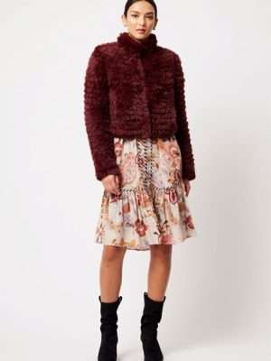 Embrace the essence of effortless style this season with our Altair Faux Fur Jacket in Scarlet. This contemporary piece features a hook and eye closure, adding a touch of sophistication to your ensemble. Say goodbye to traditional zip closures and hello to a sleek hook and eye closure design, adding a modern twist to the classic bomber silhouette. Stay cozy on chilly days with the fully lined interior, providing warmth without compromising on style. Whether layered over a chic dress for an evening out or paired with your favourite denim for a casual daytime look, the Altair elevates any outfit with its understated elegance.