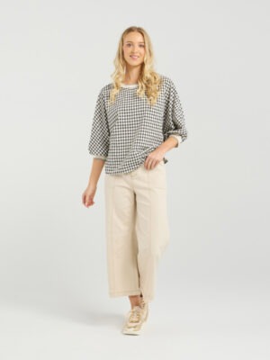 Discover one of our best-selling easy-fit tops, designed for effortless style and this season updated in a cute check fabric, giving it a playful charm. The finishing touches include a striped rib neck and cuffs, adding a luxe finishing touch. Embrace comfort and fashion with this top, a must-have for any wardrobe.