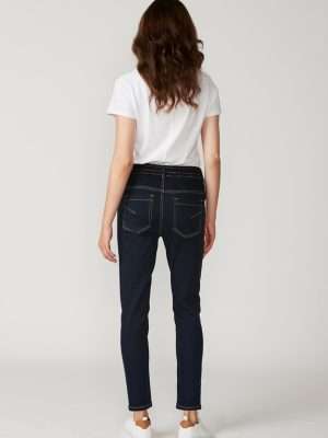 Casual jean with elasticated waist and adjustable drawstring tie. Soft handle achieved by special garment wash.