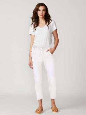 Casual jean with elasticated waist and adjustable drawstring tie. Soft handle achieved by special garment wash.