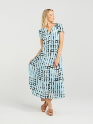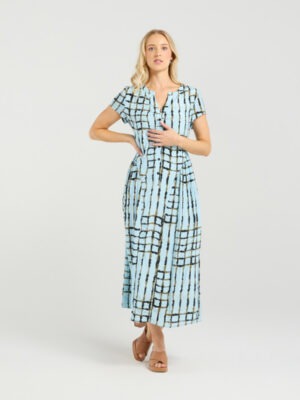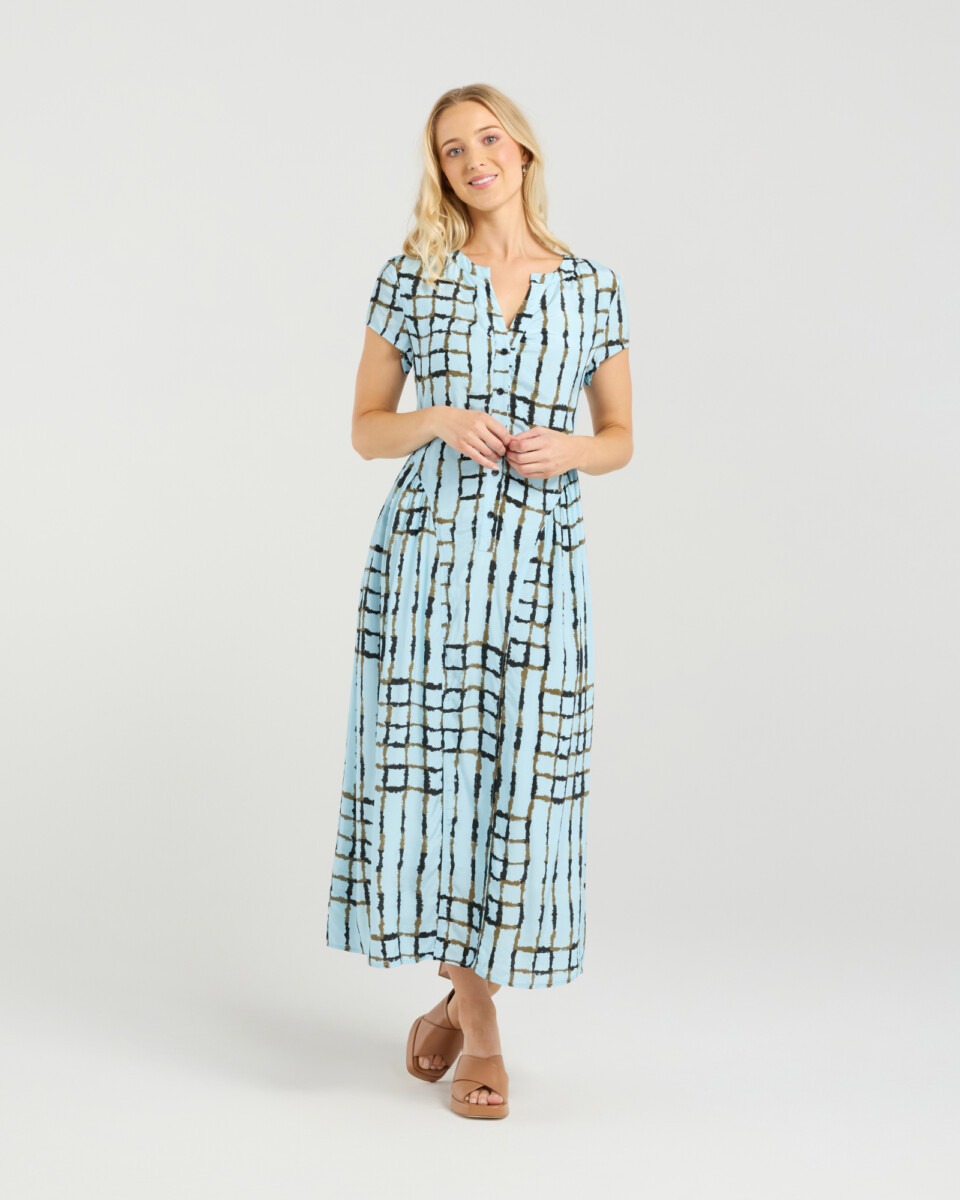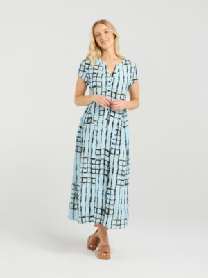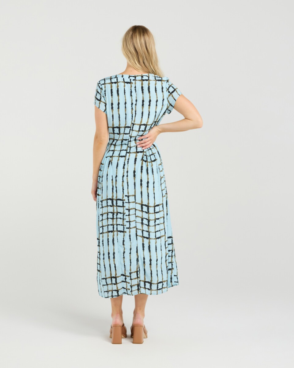 This shirt dress effortlessly blends classic tailoring with feminine flair. Featuring a cap sleeve and a button-down front that extends to the waist, it offers a polished look with a relaxed fit. The curved, gathered waist detail cinches the silhouette, creating a flattering shape that transitions seamlessly from day to night.