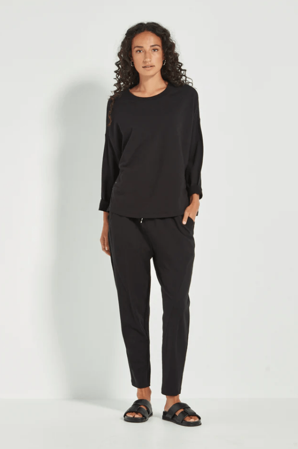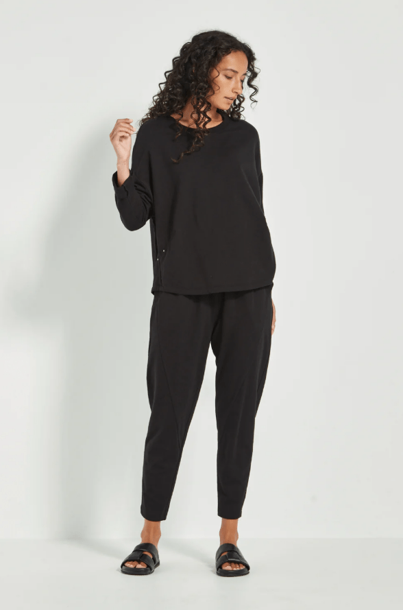 The Civic Pant is your relaxed essential, refreshed in timeless solid colours for maximum versatility. Based on the best-selling Charm silhouette, it features a tapered leg that finishes at the ankle, an elasticated drawstring waist for all-day comfort, curved front pockets, panelled leg detail, and patch pockets at the back. Crafted in soft stretch cotton-elastane knit, it’s the ideal off-duty pant that still looks pulled together. Pair with your favourite tee, knit, or the Downtown jacket for easy, everyday style.