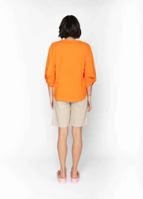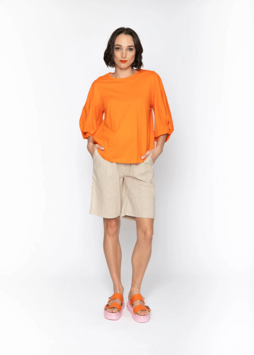 This top features a flattering scoop hem line and elegant puff sleeves with a permanent internal tie for a half-up finish. Elevate any outfit with this sophisticated and exclusive piece, perfect for showing off your unique style.