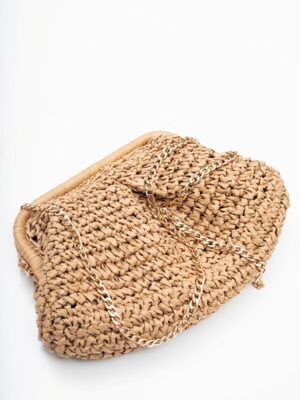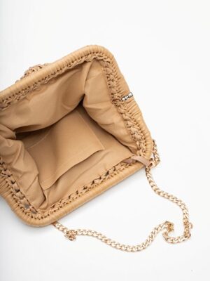 Embrace laid-back coastal vibes with this gorgeous bag, featuring pleat detailing at the front and a removable gold chain for versatile wear, carry it as a clutch or wear it crossbody or on the shoulder. The perfect summer accessory for beach days, sunset drinks, relaxed weekends, or even weddings, this wee number will take you anywhere!