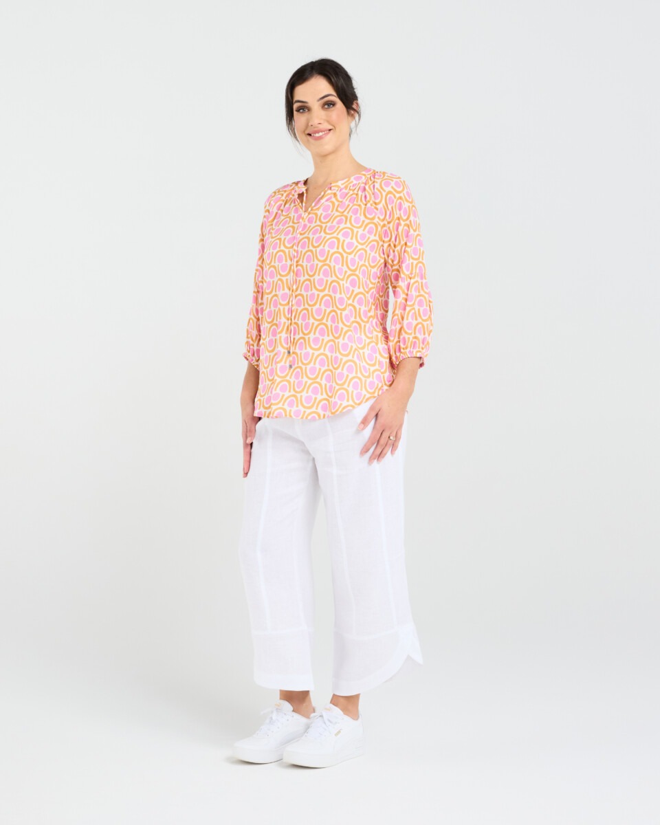 Blackstone’s Colette Gathered Sleeve Top is a must-have addition to your wardrobe that combines effortless style with ultimate comfort. Made from 100% rayon, this top is as soft as it is breathable, perfect for any season. Its unique gathered sleeves add a touch of elegance and sophistication, making it versatile for any occasion. Elevate your style with the Colette Gathered Sleeve Top and experience fashion that doesn’t just look great but feels great too!