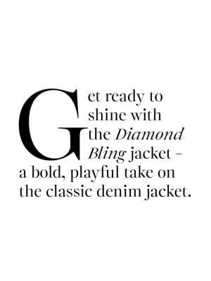 A style that makes a statement the ‘Diamond Bling’ jacket showcases a fun, playful twist on a classic. Finished in this season’s bold ‘Sparkle-licious’ embellished denim, this jacket offers a standard fit and shaping for a flattering finish. Coordinate with the matching ‘Rhinestone Age’ jean for a contemporary look that is on trend.