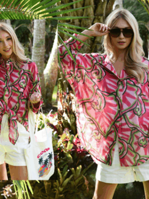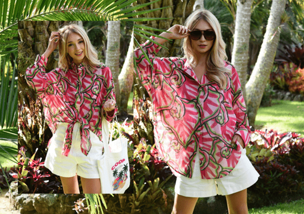 Proving that summer dressing has never been easier, the ‘Easy Choice’ shirt sports a relaxed, oversized silhouette perfect for layering, tying and tucking. Crafted in the ‘Going Off Tropic’ abstract printed cotton voile, this ultra-lightweight shirt makes for the perfect holiday companion.