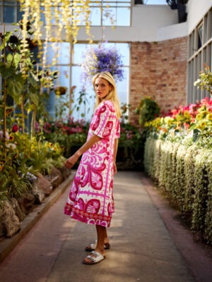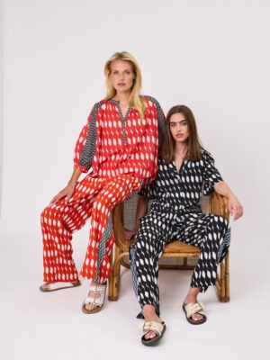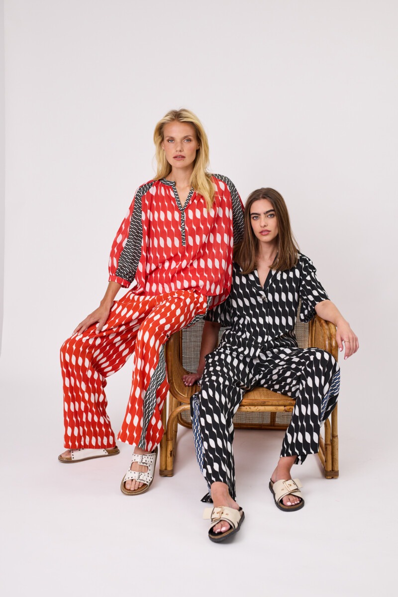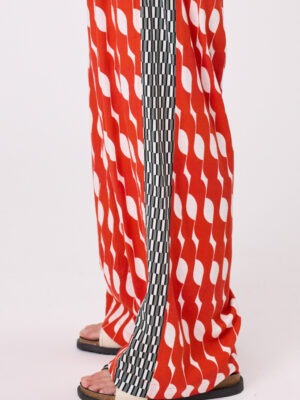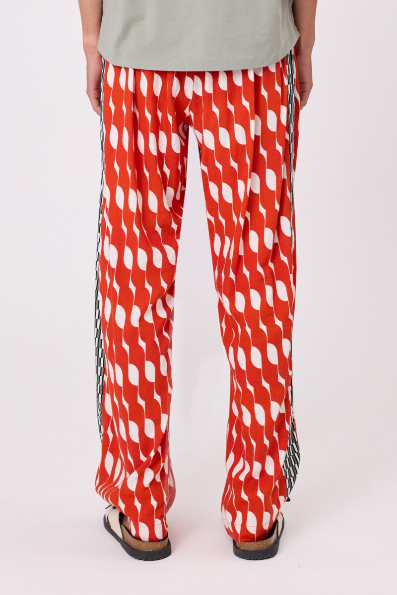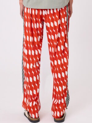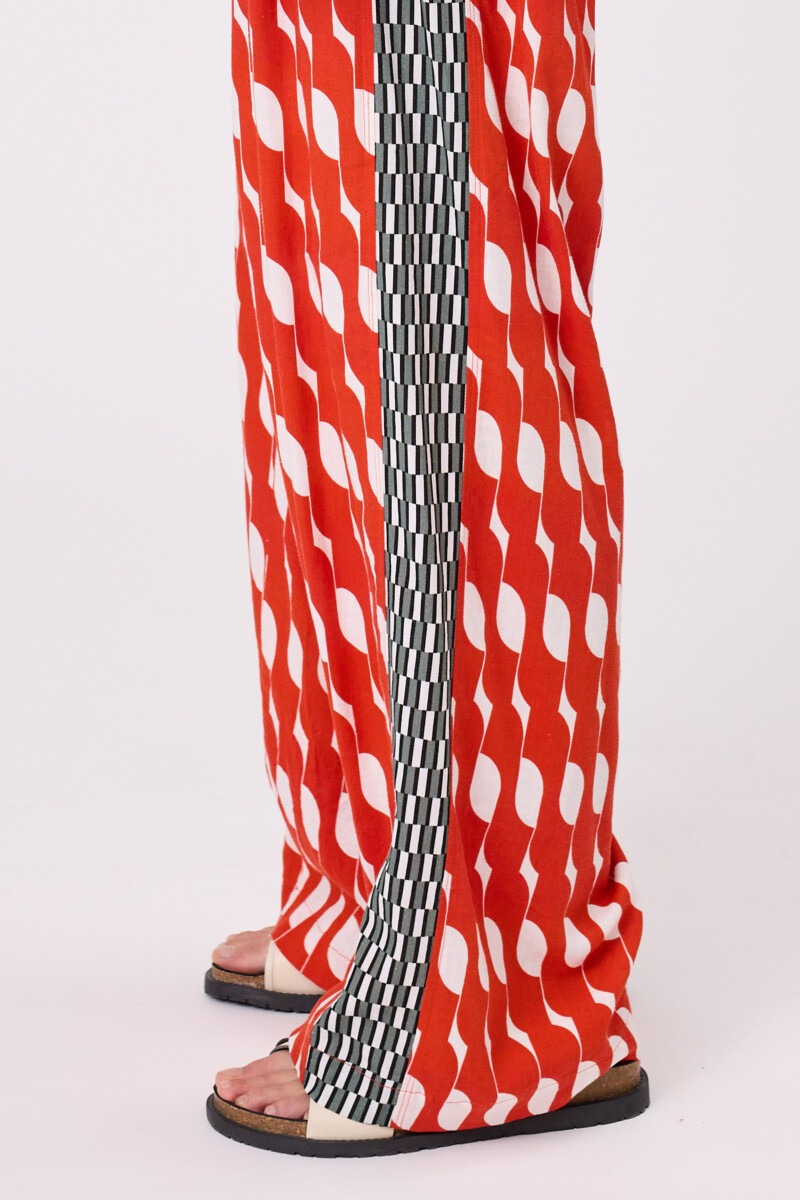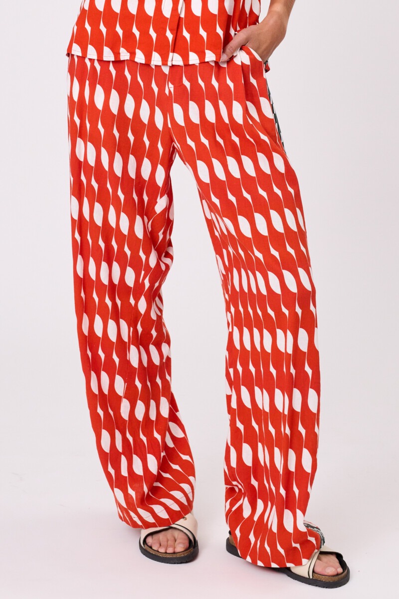 An effortless pull-on pant in a breathable viscose-linen blend, featuring a striking all-over orange print. The flat front and elasticated back waistband offer both polish and comfort, while contrast print side panels and front scoop pockets add a modern, playful touch. A fresh pop of colour, made for easy days.