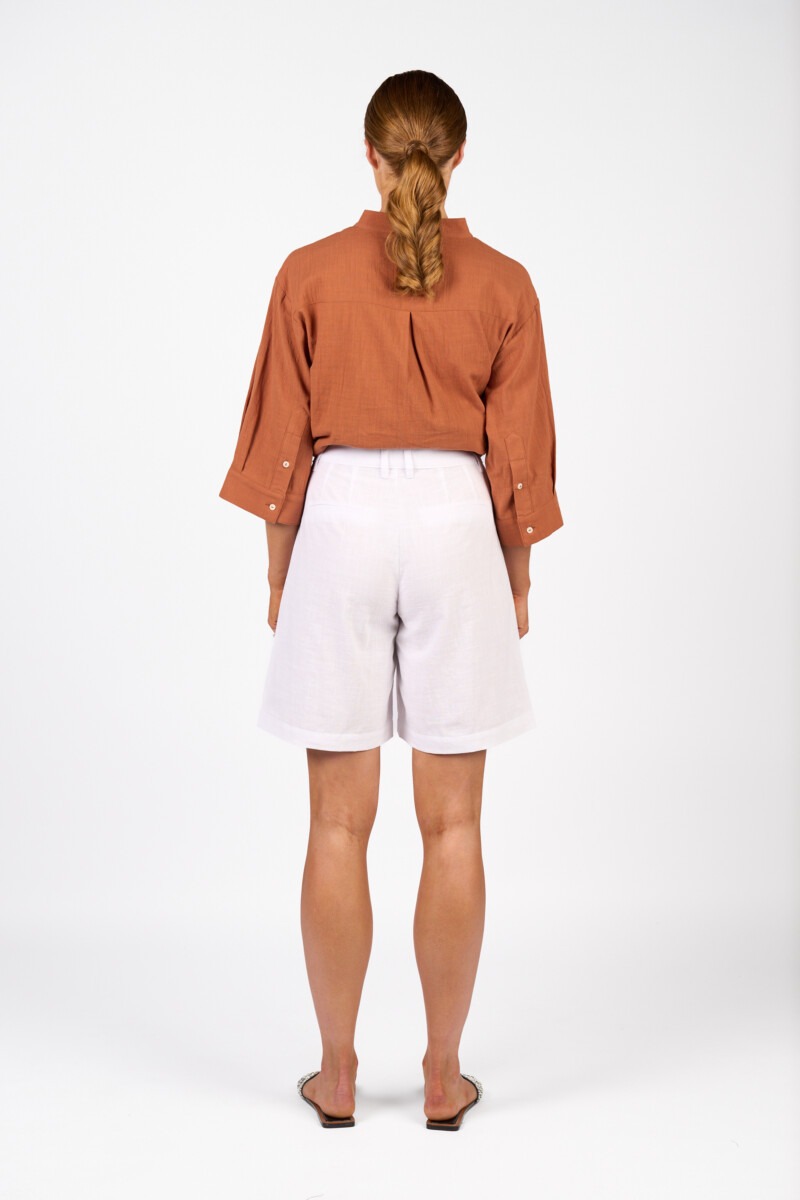 The Flynn Short is a breezy summer style in lightweight cotton with a linen look. Designed with a wide leg fit and practical side slash pockets, it features a marble button closure and beltloops for a polished finish. Perfect for staying cool and comfortable on warm days.