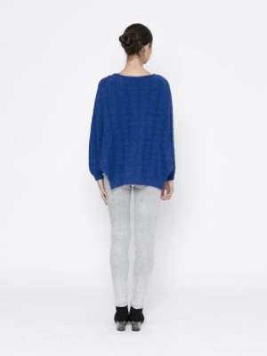 A vibrant blue cardigan with a v-neckline, full button front and batwing sleeves.