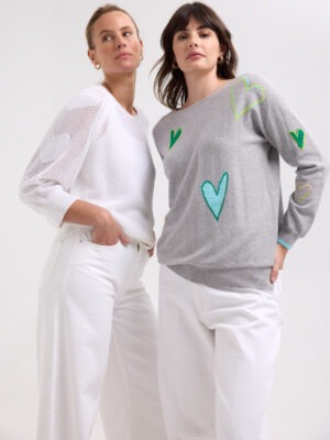 The sweetest knit for your spring wardrobe! Hearts on my sleeve is just that, a 100% cotton knit with hearts through the sleeves.