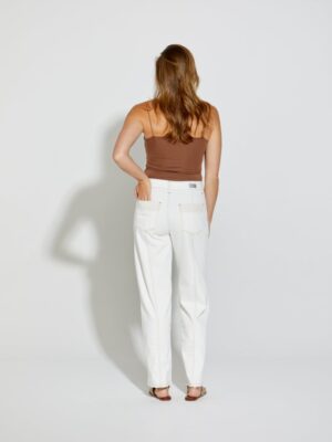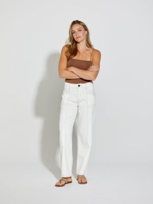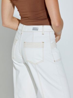 Elevate any outfit with these wide leg ankle grazer jeans, in a milk white colourway. This style features seam detailing in tan on the pockets and down the middle of the back and front leg, elongating the leg length.