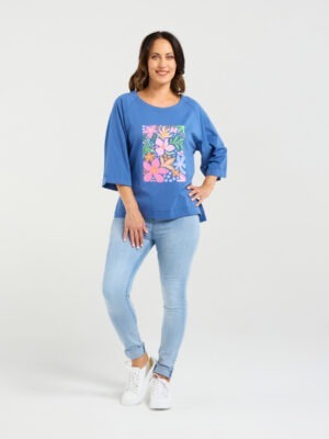 A fresh take on floral, this t-shirt features flared sleeves that hit just below the elbow, paired with a round neckline for a relaxed, modern silhouette. The bold floral print adds a striking pop, and it’s available in multiple colors — a style for every mood.