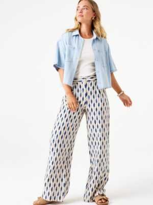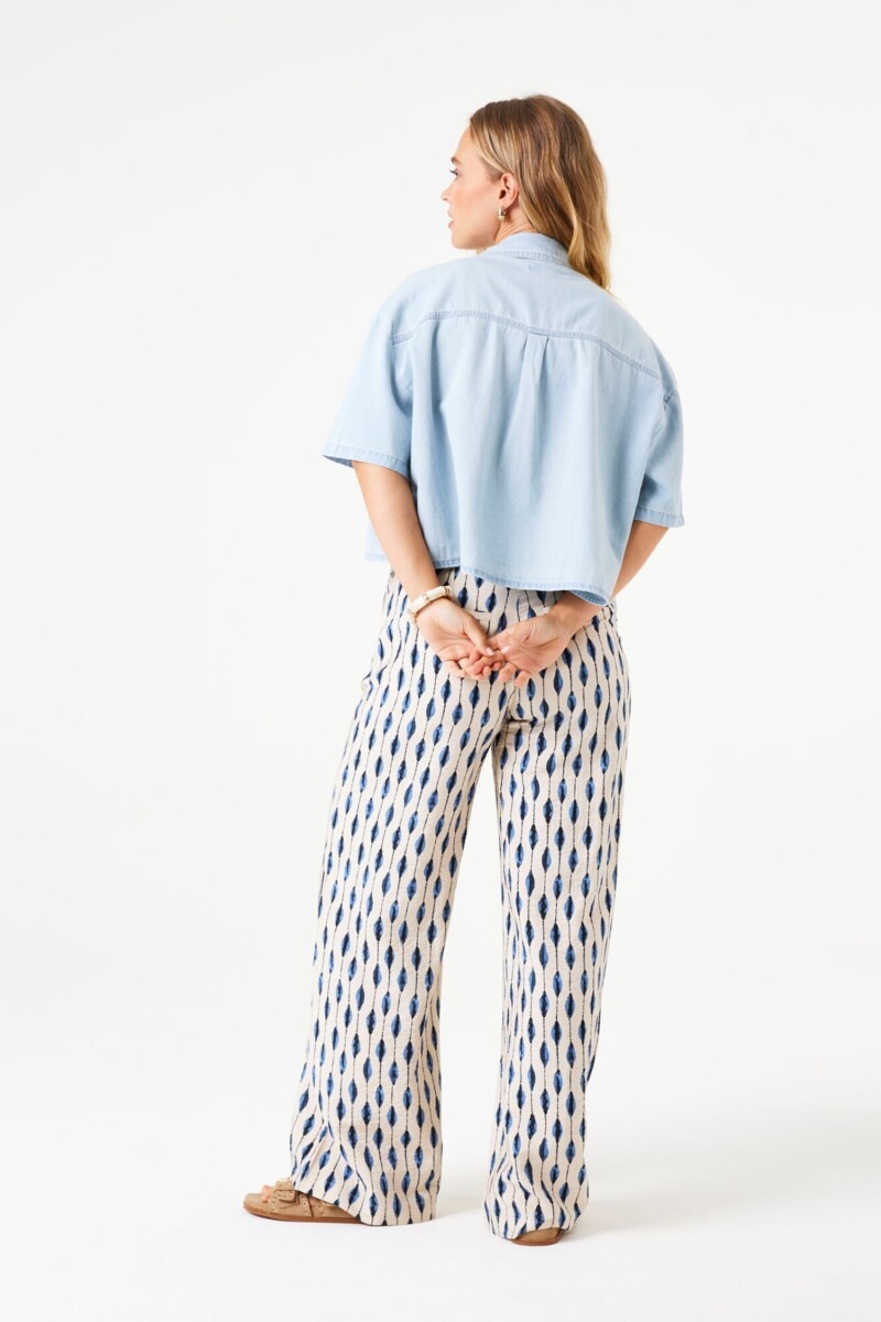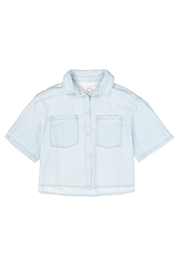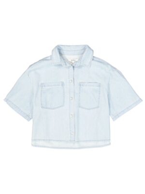 Denim blouse with chest pockets. A timeless item like this is perfect for this season! This blouse has short sleeves, a collar, button closure, and a relaxed fit. This item is made of 100% cotton.