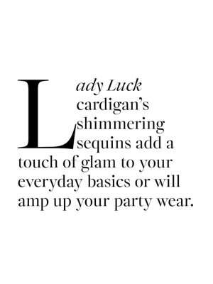 Showcasing the ‘Dream Sequins’ velvet fabrication embellished with sequins, the ‘Lady Luck’ cardigan is a wonderful elevated option to have in the wardrobe. Perfect for offering arm cover, this cardigan is shorter in length and offers a button through front. Wear daily to elevate your basics with a touch of glam, or utilize as party wear all year ‘round. • Button through front• Satin bound neckline• Sequin embellished velvet
