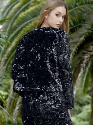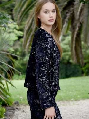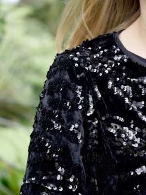 Showcasing the ‘Dream Sequins’ velvet fabrication embellished with sequins, the ‘Lady Luck’ cardigan is a wonderful elevated option to have in the wardrobe. Perfect for offering arm cover, this cardigan is shorter in length and offers a button through front. Wear daily to elevate your basics with a touch of glam, or utilize as party wear all year ‘round.