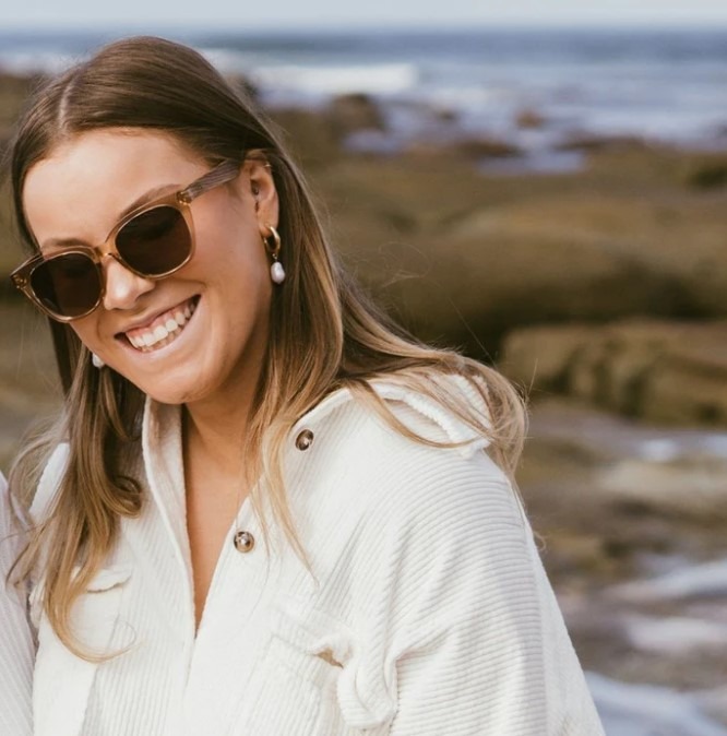 A modern take on the classic cat-eye silhouette, Lila Grace has been carefully designed to flatter all face shapes. With gentle curves and midsize proportions this soft champagne toned sunglass has become an absolute crowd favourite.