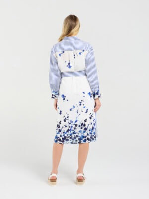Blackstone’s Margot Print Back Shirt Dress, a stunning blend of comfort and style that effortlessly transitions from day to evening wear. Crafted with a thoughtful combination of materials, this dress features a front made from a linen blend for breathable comfort, while the back dazzles in a rayon blend print that adds a touch of elegance and fluidity. Perfect for those who appreciate a chic silhouette with a surprise element, the Margot Dress promises to be a versatile addition to your wardrobe.