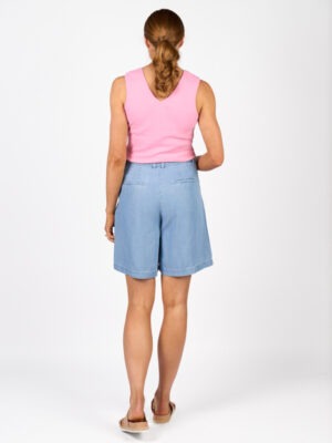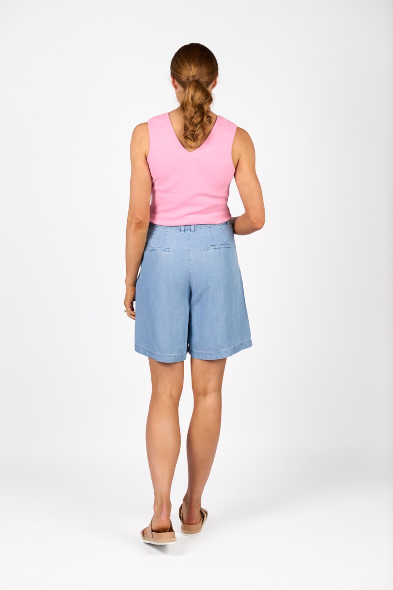 The Naomi Short is an easy warm-weather essential with a soft, drapey feel and denim-inspired look. Designed in a relaxed wide leg fit with crisp white contrast stitching and slash pockets, it’s a comfortable option for everyday styling.