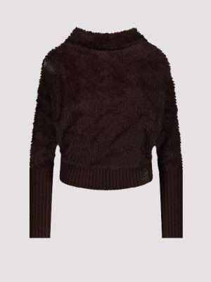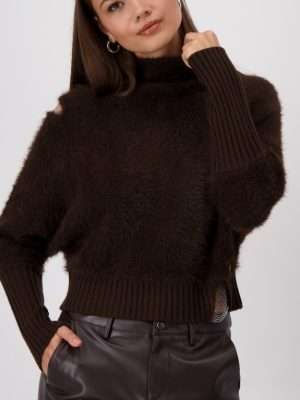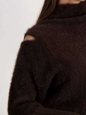Exclusive to Stacey in the top of the south. This soft plush jumper is embellished with a cut-out on the right shoulder and a cut-out and chains on the ribbed body hem.