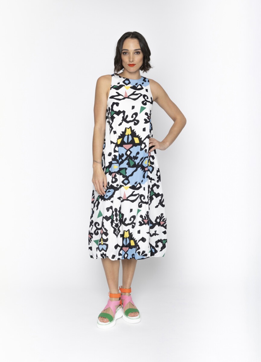 The Rosa Dress has a fitted torso with a relaxed A-line skirting and side pockets. This breezy and lightweight dress is designed to elevate your style with its elegant subtle puff hem line.
