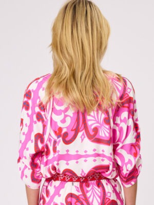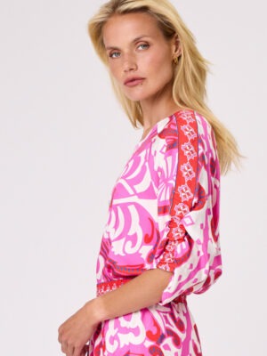 This all-over Saint print top is crafted from soft, drapey viscose for a graceful, fluid silhouette. Featuring a round neckline, raglan sleeves in a flattering mid length, and subtle elasticated gathering for a touch of texture and shape. Effortlessly stylish and comfortable.