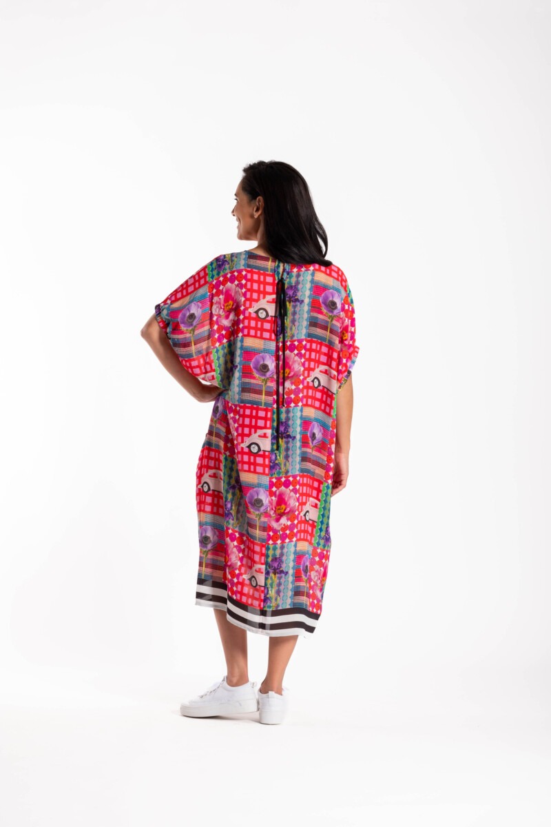 – Adjustable back tie at neckline