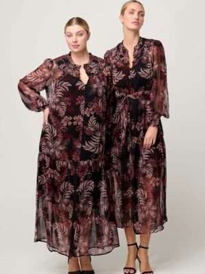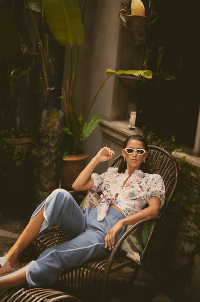 The exclusive Plume Blossom print captures a painterly mix of soft florals in vibrant hues, contrasted beautifully with intricate lace splicing along the neckline and shoulders. Delicate puff sleeves with scalloped lace accents enhance the romantic silhouette, while the versatile front button closure allows you to style it tucked in, layered, or tied at the waist for a more relaxed look.