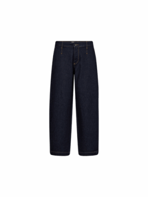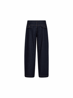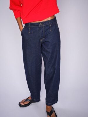 Upgrade your wardrobe with these chino-inspired jeans, perfect for the season. Crafted in a relaxed mom fit with a high-rise, they come in a deep dark blue wash accented by contrast tobacco stitching. Flap pockets on the back add a stylish touch. Pair with a bold-coloured sweatshirt and sneakers for an effortlessly cool outfit.