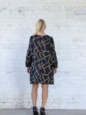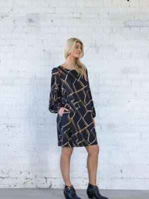 The Dressed Vienna dress is a relaxed fit dress that finishes on the knee. Featuring a crew neck, side seam pockets and full bishop style sleeves with elastic cuffs that can be worn down, or pulled up to create a puffed sleeve look. Available in an exclusive print.