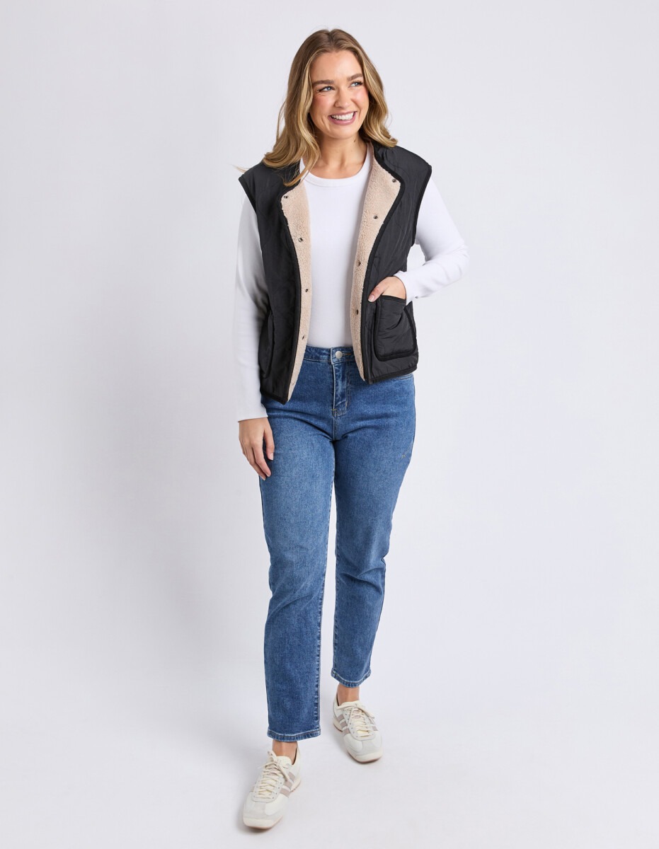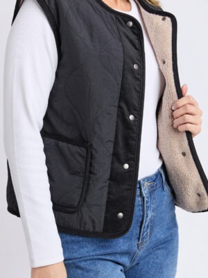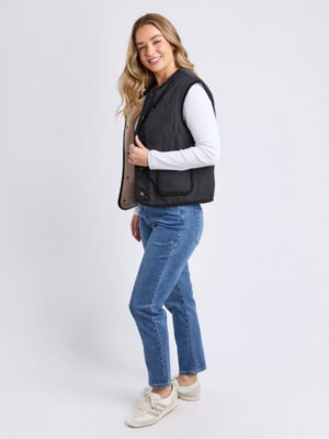 The Alberta Vest is the perfect layering piece for those in-between days. Featuring a classic quilted body with cosy sherpa lining, it adds warmth without restricting movement. Finished with a simple front snap opening, it’s easy to throw on over long sleeves, knits, or hoodies for an extra layer of comfort.