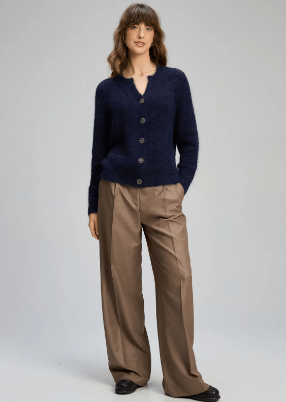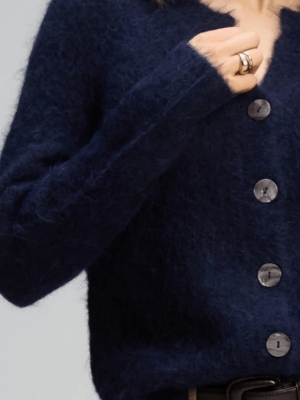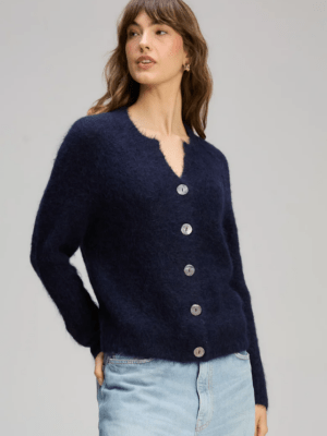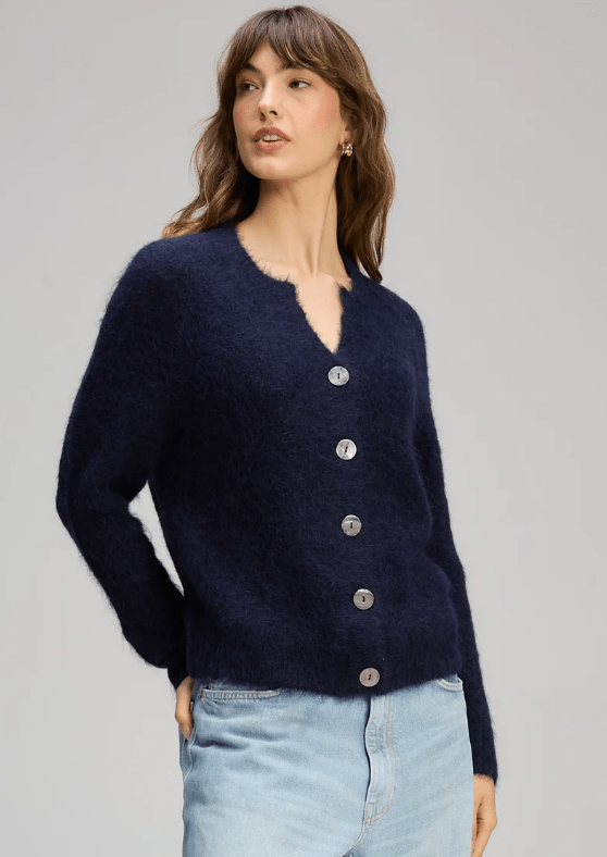 Soft, light and seriously cosy, this is the cardigan you’ll want close by all season. Cut in a classic shape with a gentle V-neckline and natural shell button front, you’ll fall in love with its beautifully fluffy texture.
