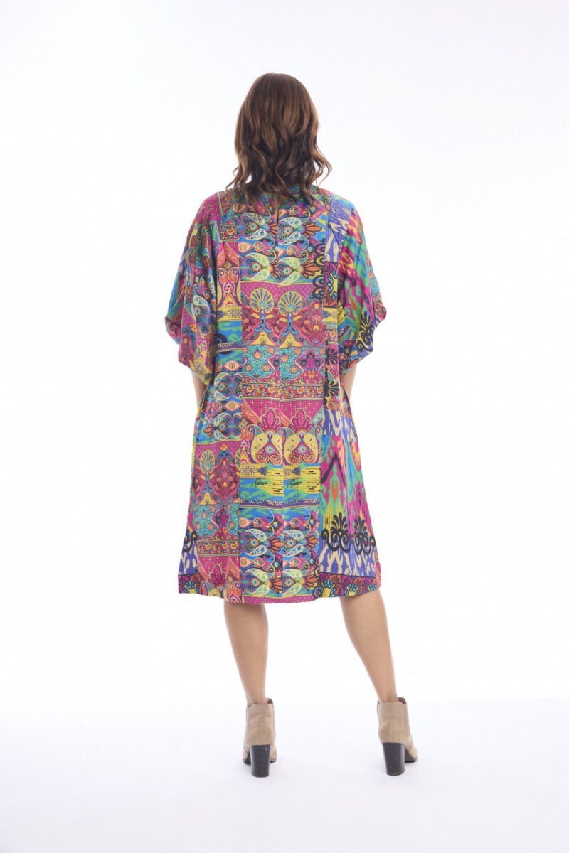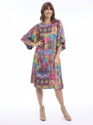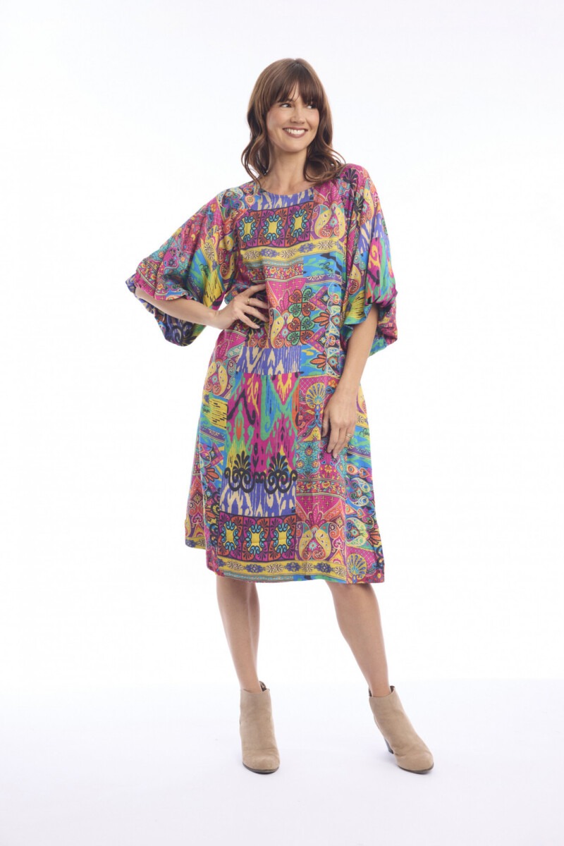 Bring effortless boho charm to your wardrobe with this vibrant Antigua dress. Crafted from 100% cotton, it offers a lightweight, breathable feel, perfect for casual outings or relaxed weekend wear. The loose, A-line silhouette allows freedom of movement, while the knee-length cut keeps it versatile and easy to style.