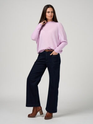 Turtleneck sweater in a super-fine alpaca–merino blend, featuring a batwing style with slim sleeves and cotton strapping panels for a modern edge.