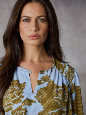 Add a playful elegance to your daytime look with this long sleeve top cut in a lightweight georgette. Pleat detailing on the yoke with a silk trim on the seam adds a distinctly Lania moment to your outfit. This top features billowing sleeves with an elegant print, dramatic shirred cuffs with contrasting embroidery thread detaliing.
