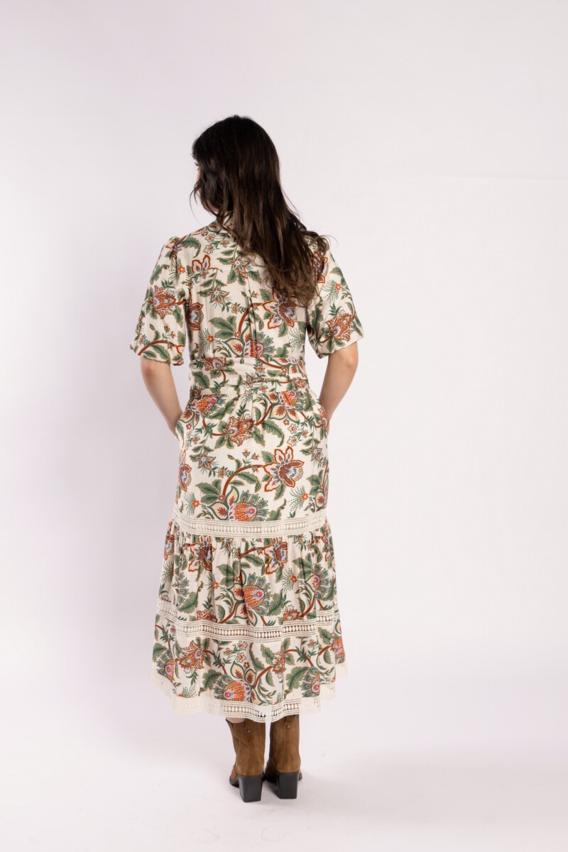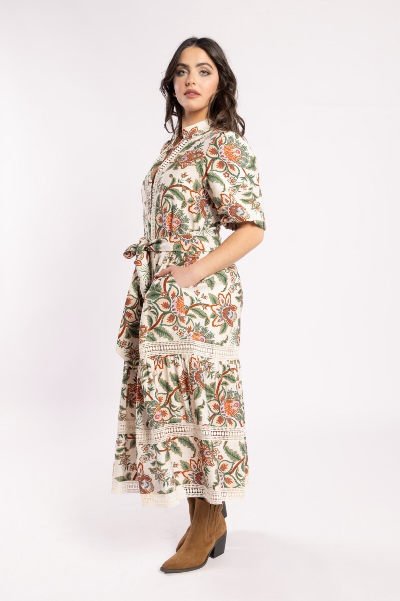 The Paisley Print Del Ray Midi Dress is an easy, throw-on style you’ll reach for again and again. Made from a soft rayon-nylon blend, it features puff sleeves, ladder lace details, a mandarin collar, and an adjustable waist tie for a flattering fit. Plus, it has pockets — because we love practical details. With its Del Ray Cream paisley print and trans-seasonal feel, this midi dress works just as well with sandals on warm days as it does layered with boots when it cools down.