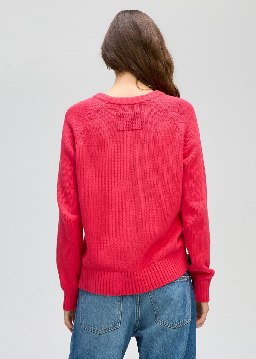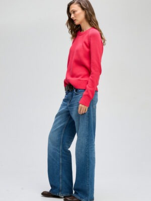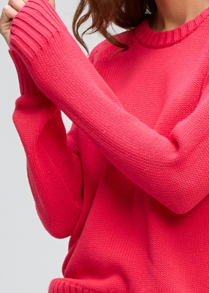 The vibrant raspberry tone adds a statement touch while remaining easy to style, making it a versatile piece for both casual and elevated looks.