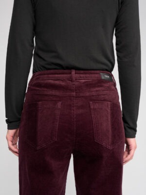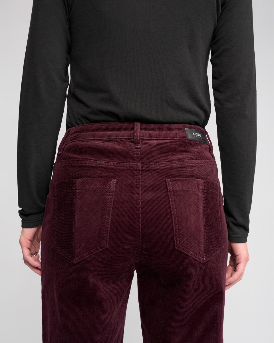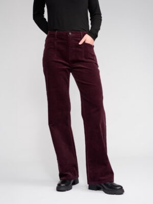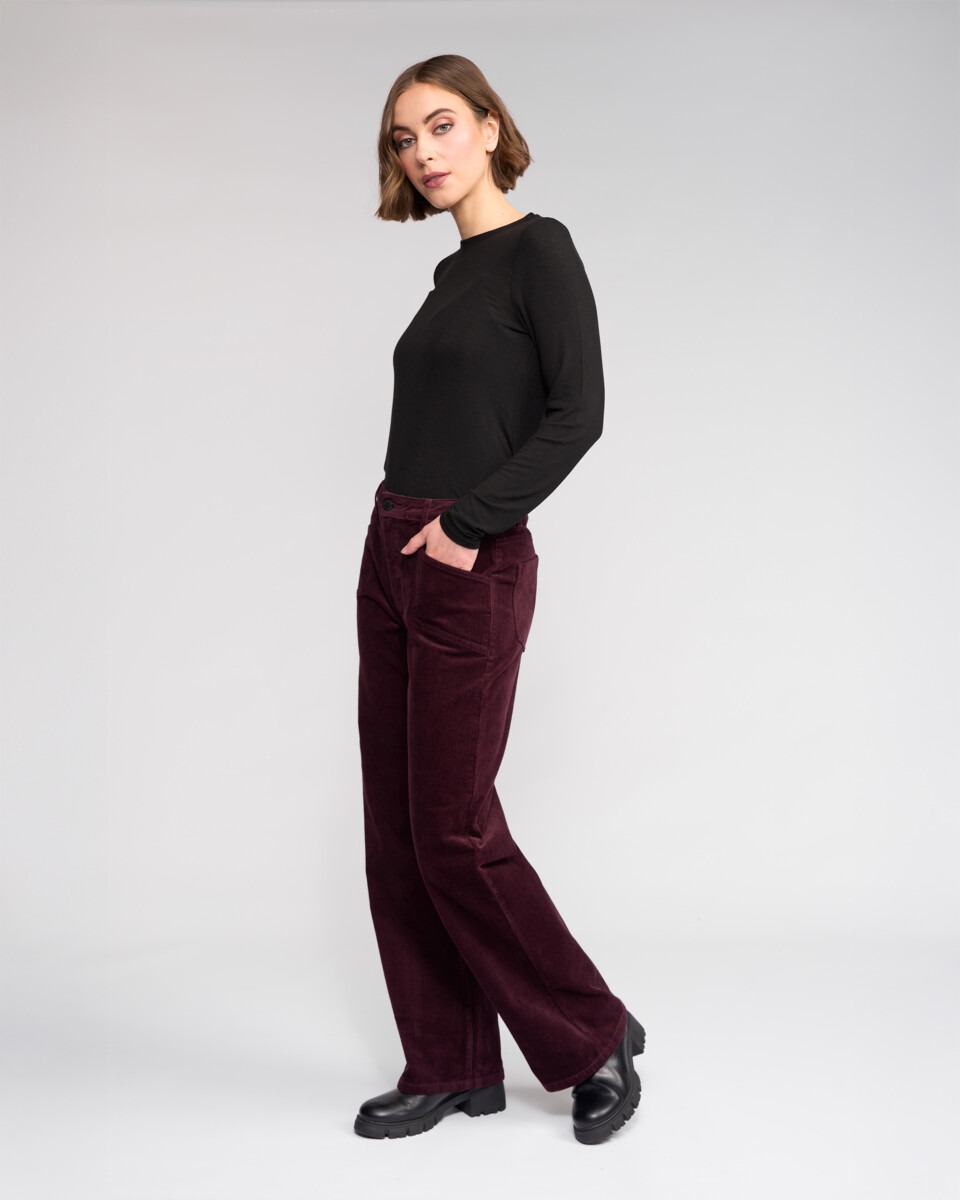 Full-length wide-leg pant in corduroy, designed in our Raisin colour — a rich dark purple-red tone.