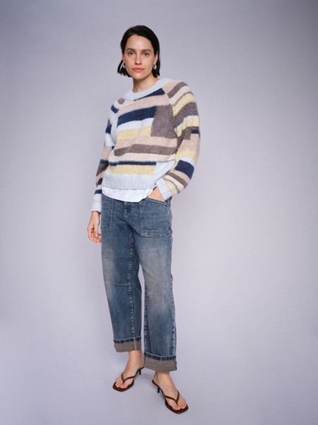 Add a touch of handmade charm to your wardrobe with this unique patchwork knit. Styled in a regular fit, it’s detailed with solid-colored ribbed trims on the neckline, hem, and cuffs. The blend of colors and textures in the patchwork gives it a one-of-a-kind, handcrafted feel. Perfectly paired with boyfriend jeans and sneakers for a laid-back, stylish look.