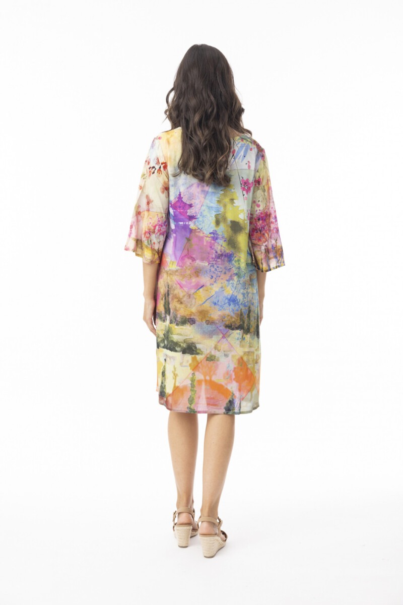 Turn heads under the sun in our stunning Digital Dress Tie. Perfect for beach holidays, this lightweight, colourful piece promises comfort and style featuring a relaxed silhouette, open neckline with tassel ties, drop-waist, knee-length skirt, and three-quarter sleeves. Ideal for soaking up the sun by the beach, this is your go-to for effortless elegance.