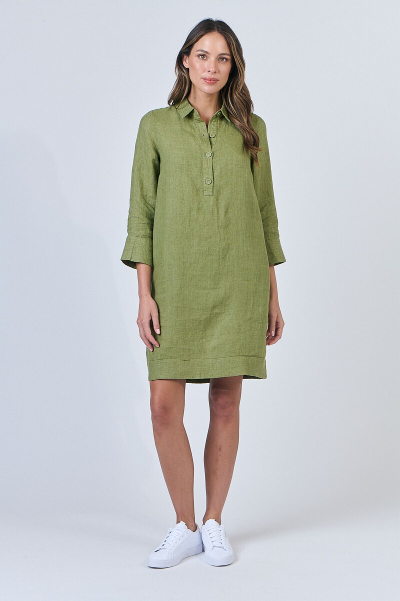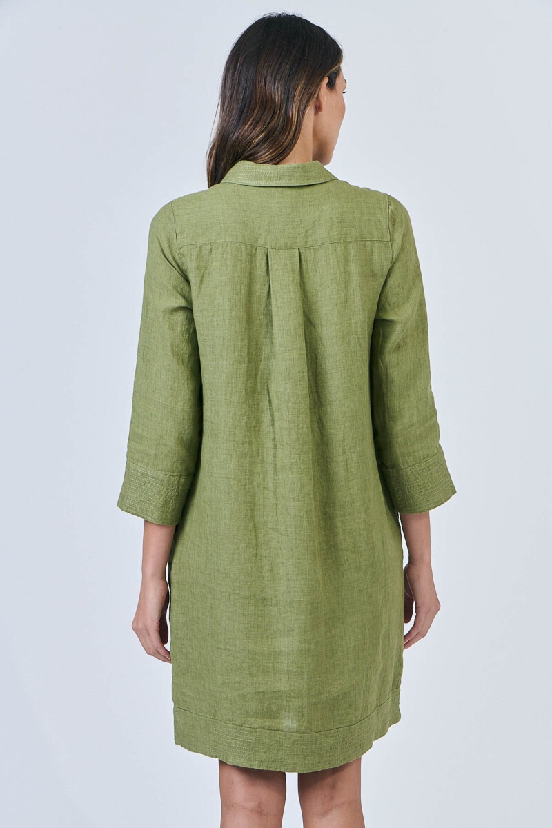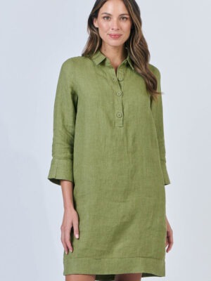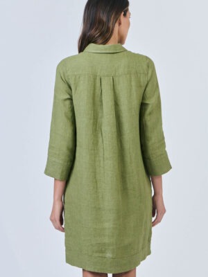 Stay covered without feeling weighed down in this shirt dress. Featuring a classic collar, half placket with pearlescent buttons, and convenient side pockets, its three-quarter sleeves and flattering knee-length cut make it perfect for any occasion. Subtle textured detailing at the cuffs and hem adds a touch of sophistication, making it ideal for both workdays and weekends.