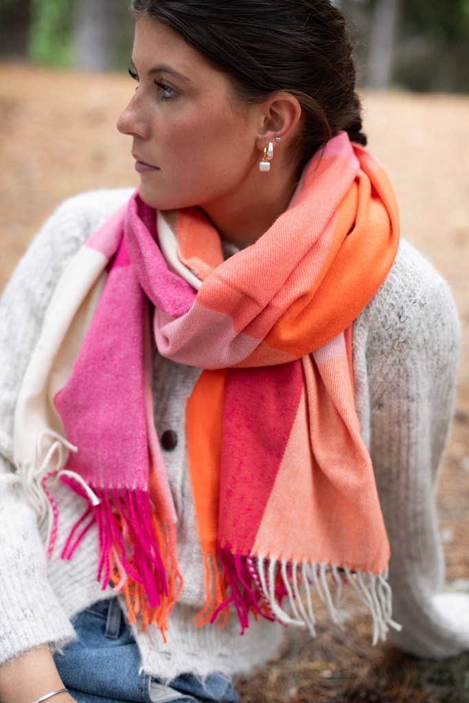 Brighten up chilly days with a burst of colour, the Fruit Loop Check Scarf is a go to scarf for playful Winter style. Featuring a bold, multi-coloured check pattern inspired by retro hues, this scarf brings joy and personality to every outfit.
