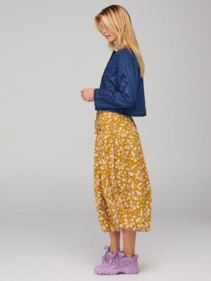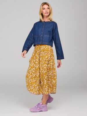 The Boom Shankar Fumiko Jacket is an elevated trans-seasonal piece in a luxe dark denim with classic contrast stitching and patch pocket detail.