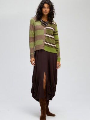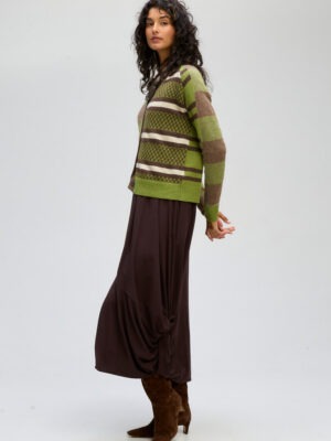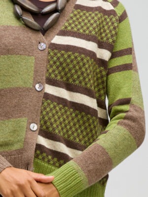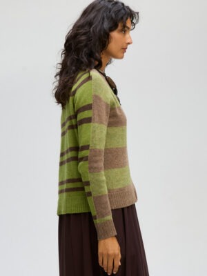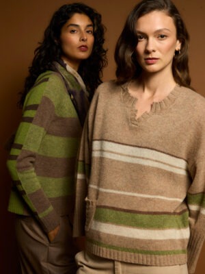 The LD & Co Groove Stripe Cardi is the kind of knit you’ll reach for again and again. Featuring a timeless V-neckline, four front buttons, and those signature reverse stripes that stripe across the front and cascade down the raglan sleeves, it’s got personality for days.