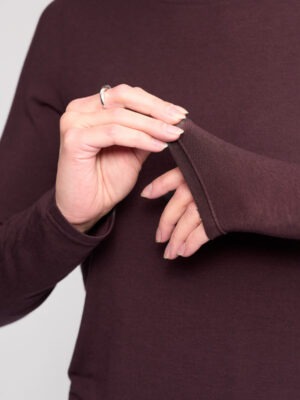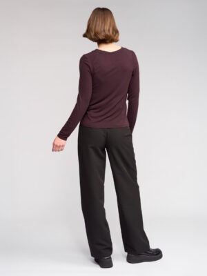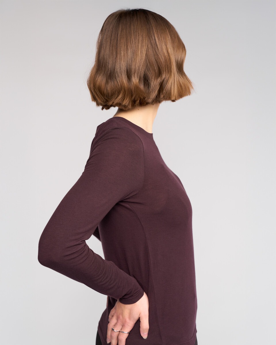 Everyday long sleeve top in Raisin, a rich, deep purplish hue, crafted from a soft Tencel, wool, and elastane blend. Featuring a round neckline and a relaxed, comfortable fit, this versatile top is perfect for layering or wearing on its own.