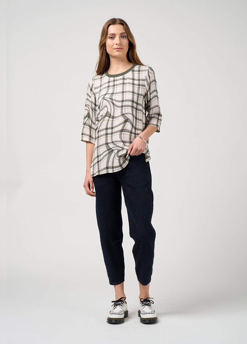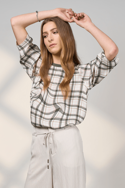 Effortless and versatile, this easy fit top features a ribbed crew neckline, 3/4 length sleeves and side splits for relaxed comfort. Perfect for layering or wearing on it’s own with casual ease.