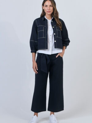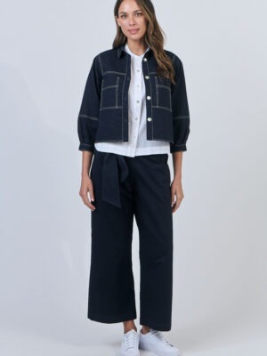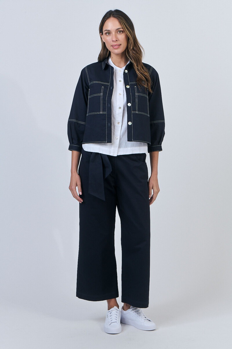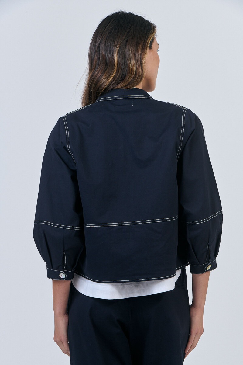 Breathe new life into your wardrobe with the shirt that marries structured design with relaxed comfort—this jacket features a cropped silhouette with twin front pockets, a button-down design, and perfectly balanced 3/4 sleeves. The clean-cut hem offers a polished finish, pairing beautifully with high-waisted or patterned bottoms. Made from 100% cotton.