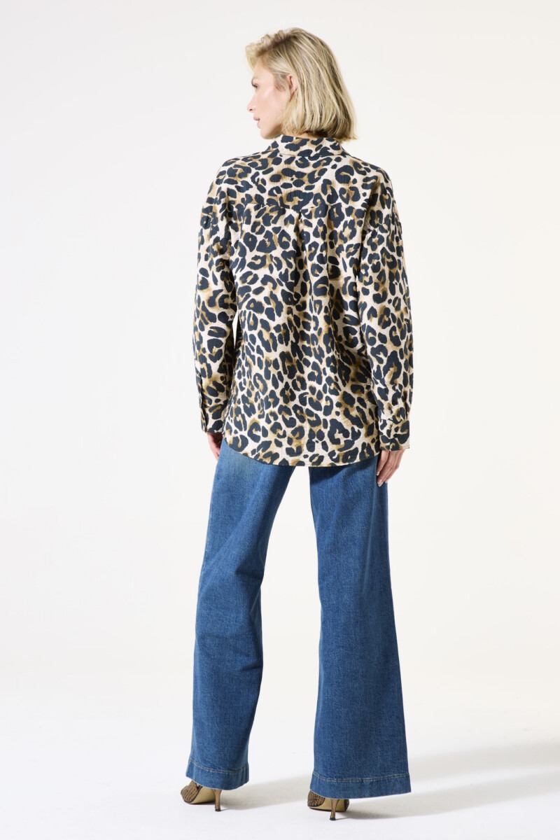 Leopard print shirt with button closure. This shirt features a classic collar, long sleeves, and a regular fit. This item is made of 88% viscose and 12% polyamide, providing a comfortable and breathable fabric with a crinkle effect. The striking all-over leopard pattern makes this shirt a statement piece in any wardrobe.